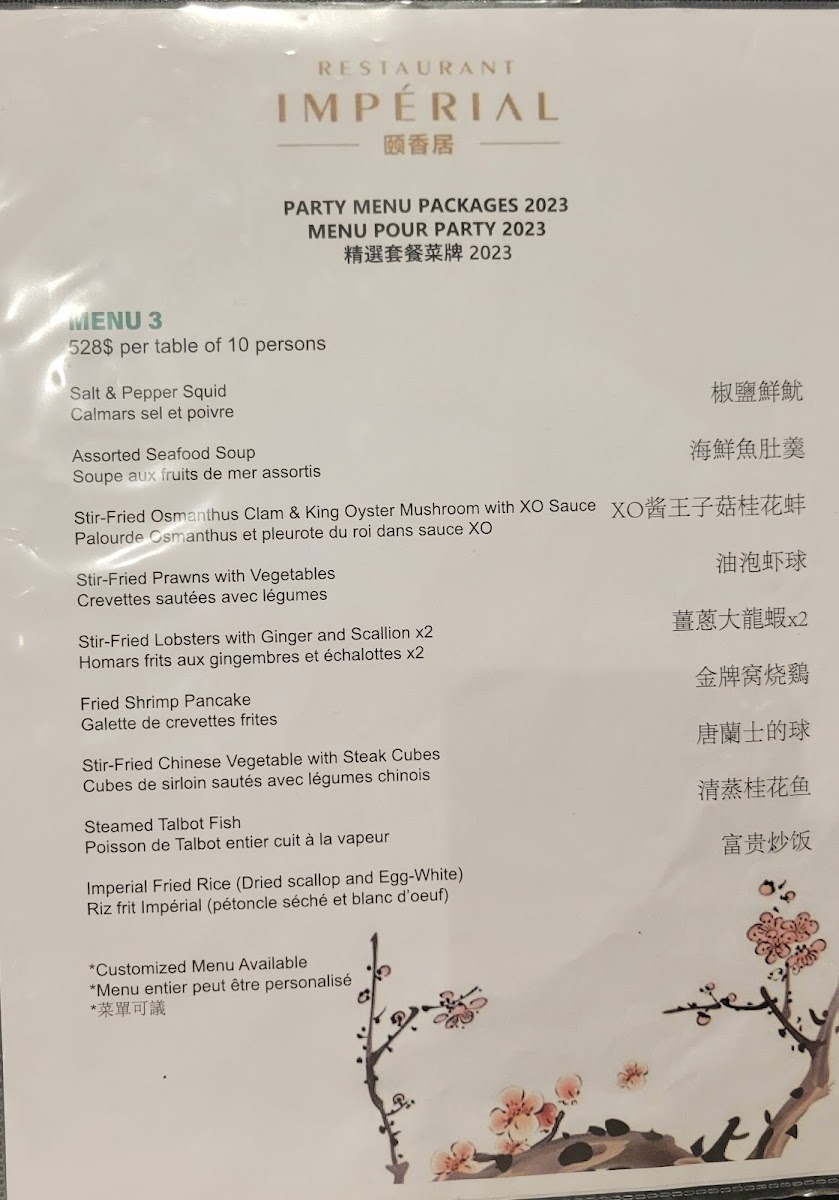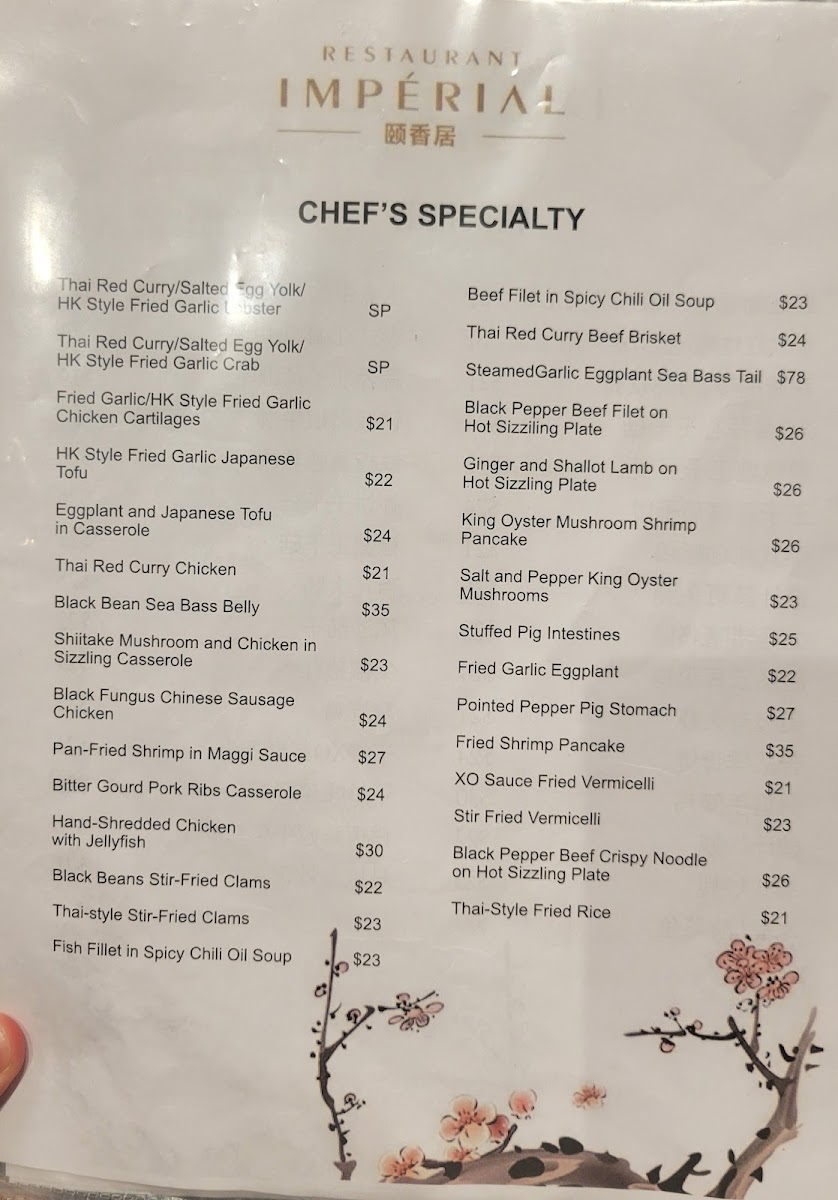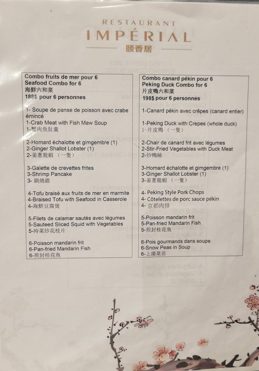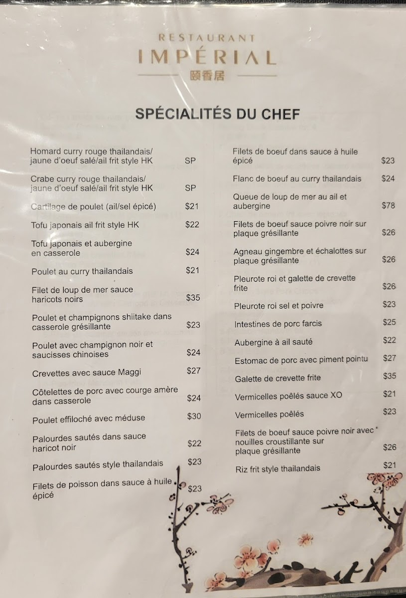 Restaurant Impérial (Pointe-Claire) Menu