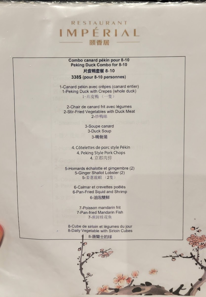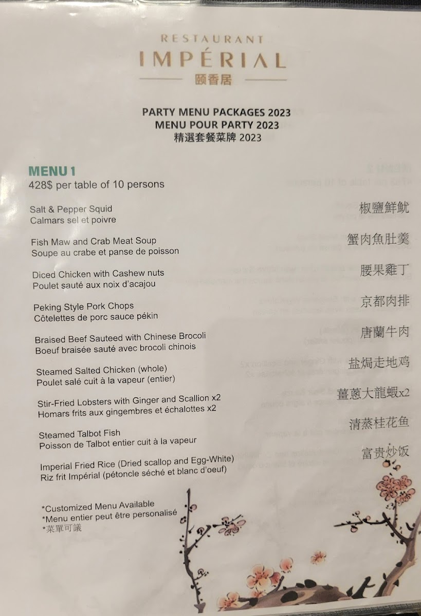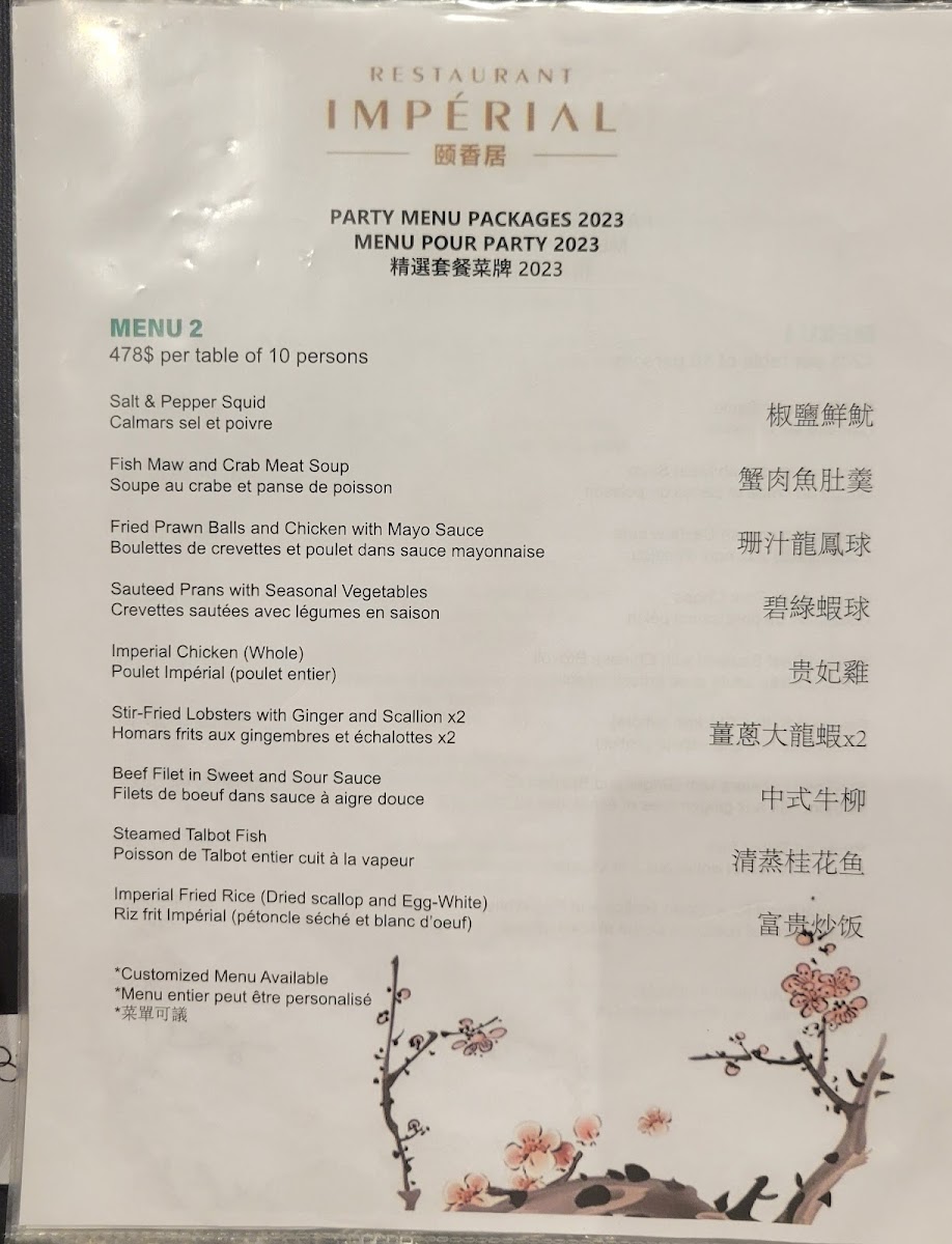 Restaurant Impérial (Pointe-Claire) Menu